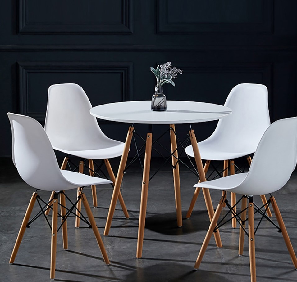 Luxury Modern Beech Wood Round Dining Table Set.